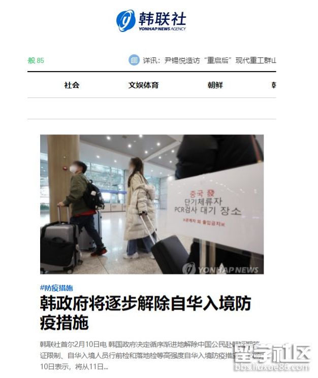 韓聯(lián)社2月10日在官網(wǎng)首頁(yè)發(fā)布新聞,報(bào)道韓國(guó)政府決定循序漸進(jìn)地解除中國(guó)公民赴韓短期簽證限制、自華入境人員行前檢和落地檢等高強(qiáng)度自華入境防疫措施。