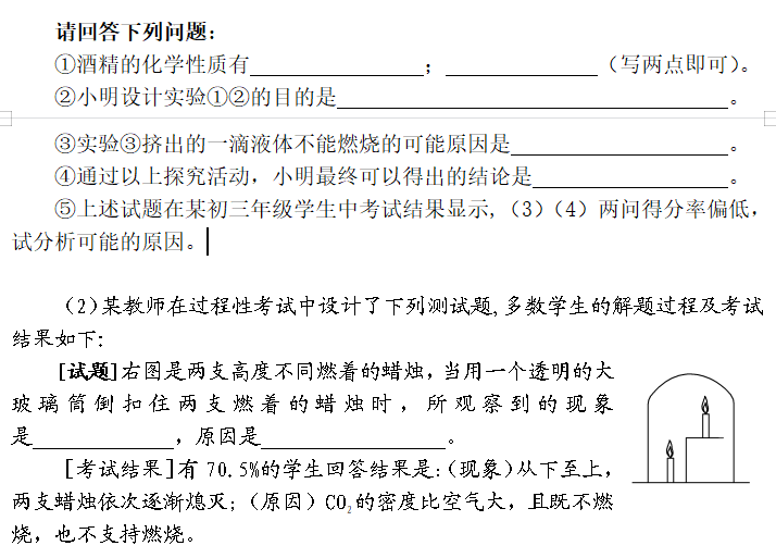 ?。?)掌握初中化學(xué)知識(shí)和技能,具備化學(xué)學(xué)科的實(shí)驗(yàn)技能和方法,能夠運(yùn)用化學(xué)基本原理和基本方法分析和解決有關(guān)問(wèn)題。