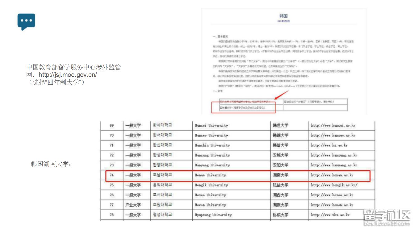 學(xué)生獲得韓國湖南大學(xué)預(yù)錄取,在國內(nèi)各主要地區(qū)知名院校校內(nèi)或附屬單位完成語言課、專業(yè)課學(xué)習(xí),獲得相關(guān)專業(yè)學(xué)分成績。成績合格者,赴韓國完成剩余學(xué)業(yè),還可繼續(xù)攻讀碩士學(xué)位,獲得韓國湖南大學(xué)頒發(fā)的學(xué)位證書,經(jīng)中國教育部留學(xué)服務(wù)中心認證,可參加公務(wù)員考試,享受海歸待遇。