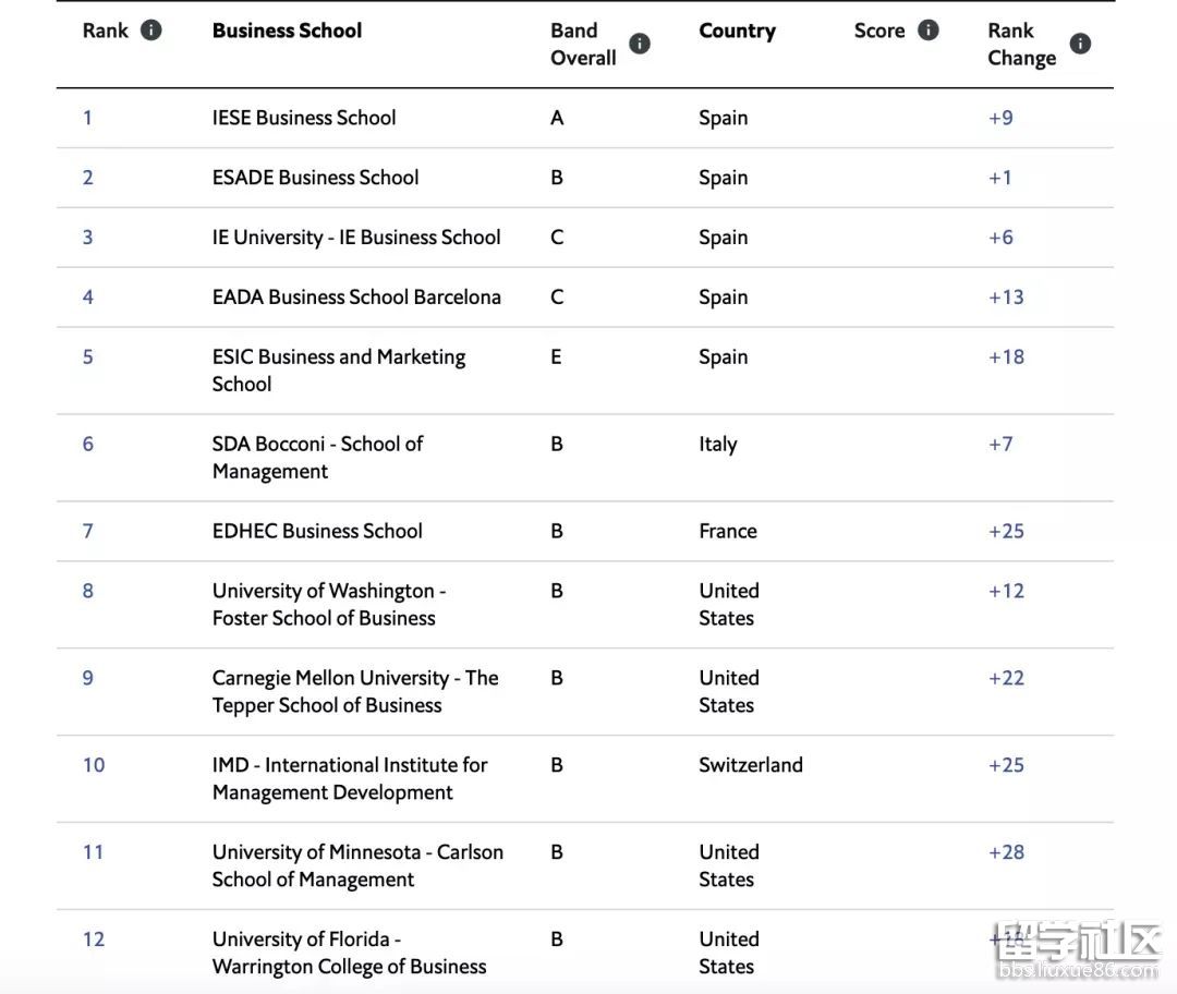 與其他榜單不同的是,經(jīng)濟學(xué)人MBA榜單并沒有排名并列的情況。但是排名相近的商學(xué)院差距非常的小,經(jīng)濟學(xué)人將商學(xué)院的MBA項目進(jìn)行了評級(A-E),旨在將分?jǐn)?shù)相近的MBA歸為同一等級。