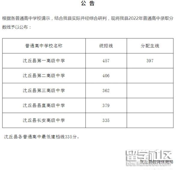 據(jù)太康縣教體局:現(xiàn)將太康縣2022年普通高中錄取分?jǐn)?shù)線公布