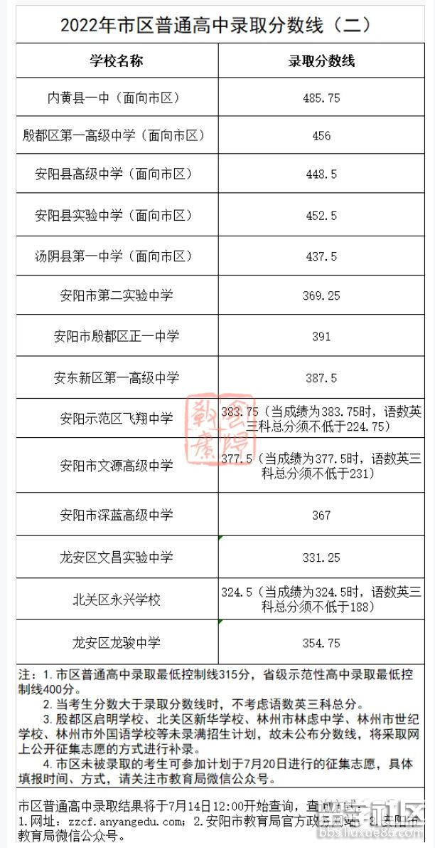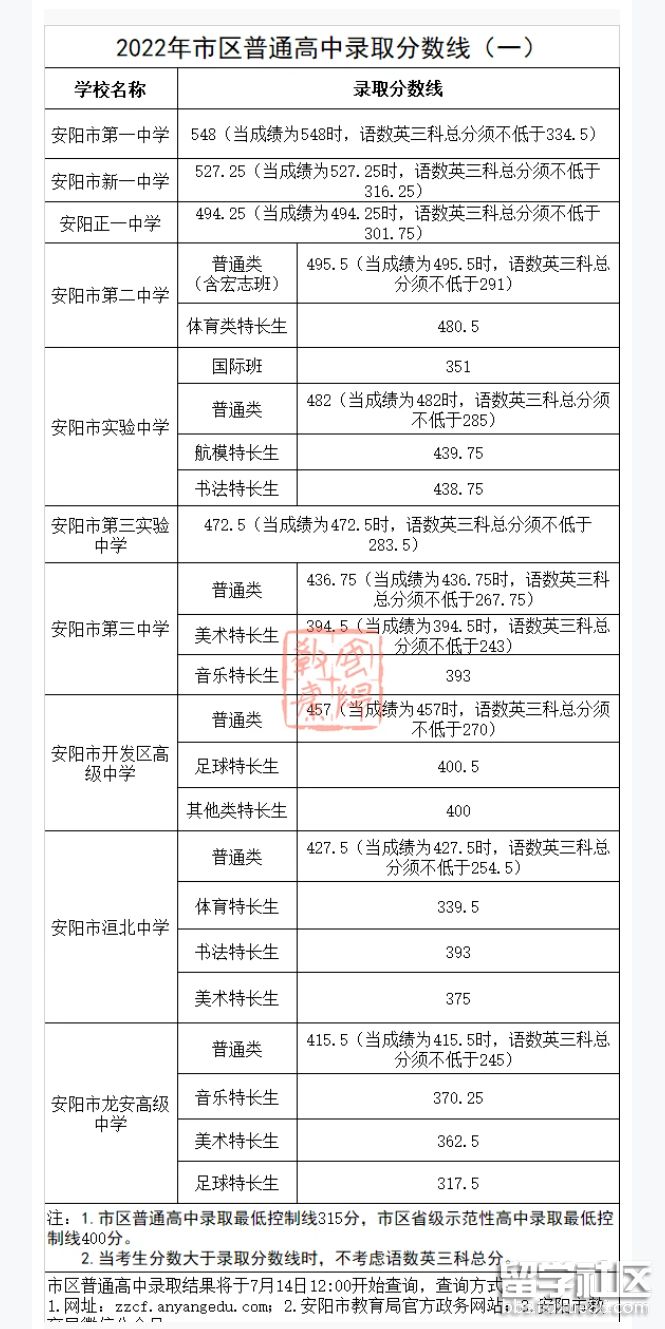 2022年【安陽市】中考錄取分?jǐn)?shù)線