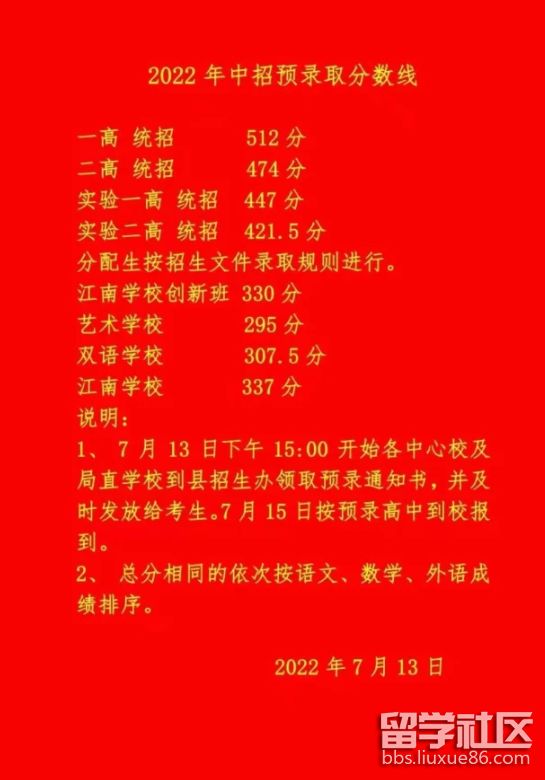 7月13日下午,2022年全市普通高中錄取分?jǐn)?shù)線出爐。