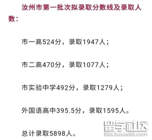 第一高級中學(xué) 統(tǒng)招生分?jǐn)?shù)線:470分;