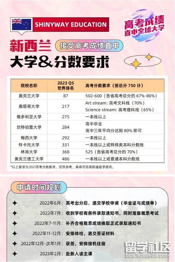 隨著這幾天高考成績(jī)的陸續(xù)發(fā)布,考的好的學(xué)生在研究怎么填到更好的大學(xué),考的不好的學(xué)生也在研究怎么才能填到好的大學(xué)。國(guó)內(nèi)高考一直以來(lái)都是異常的激烈。其實(shí)可以考慮去國(guó)外留學(xué),競(jìng)爭(zhēng)壓力相對(duì)較小且大學(xué)質(zhì)量高。并且近年來(lái)有些國(guó)外大學(xué)是可以憑借高考成績(jī)直接申請(qǐng)的。下面小編就介紹一下新西蘭可以用高考成績(jī)直接申請(qǐng)的大學(xué)及申請(qǐng)條件,一起來(lái)看看吧。