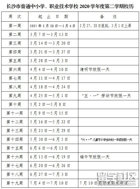 《長沙市普通中學(xué)、職業(yè)技術(shù)學(xué)校2020學(xué)年度校歷》
