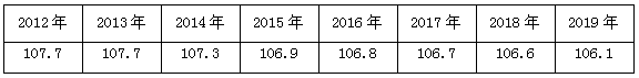 2012年-2019年國內(nèi)生產(chǎn)總值指數(shù)表(北京)