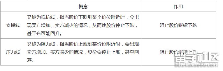 (1)支撐線和壓力線的作用是阻止或暫時阻止股價朝一個方向繼續(xù)運動。