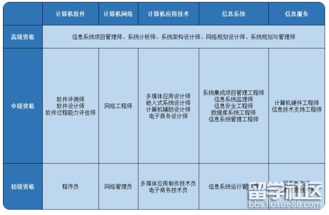 軟考全稱(chēng)計(jì)算機(jī)技術(shù)與軟件專(zhuān)業(yè)技術(shù)資格(水平)考試,涵蓋5個(gè)專(zhuān)業(yè)領(lǐng)域, 3個(gè)級(jí)別層次,27個(gè)專(zhuān)業(yè)資格。