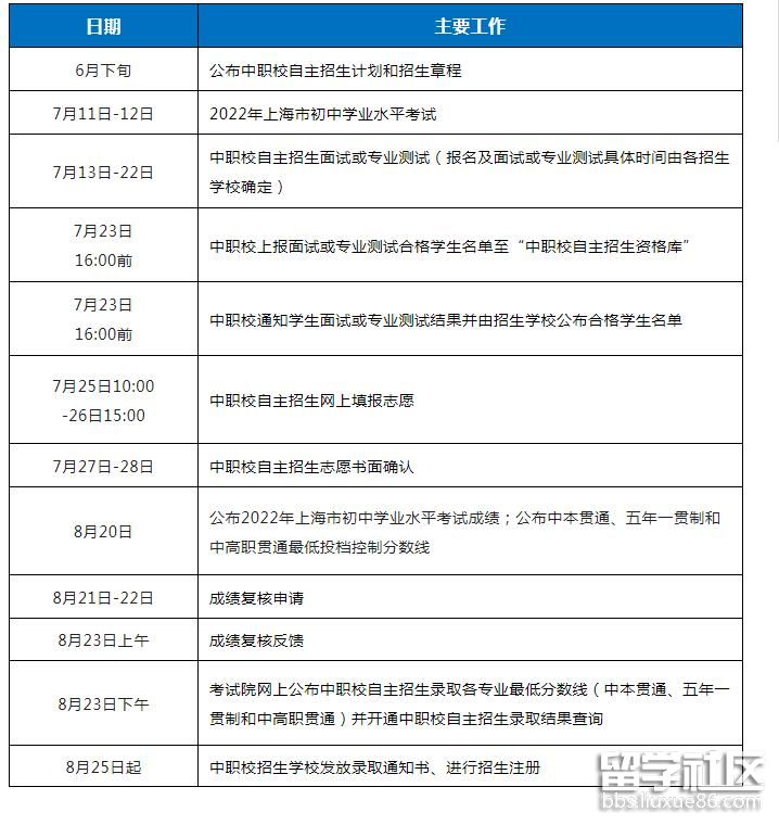 2022年上海市初中學業(yè)水平考試(中考)將調整至7月11-12日舉行,現將調整后的2022年上海市中等職業(yè)學校自主招生工作實施日程表公告如下: