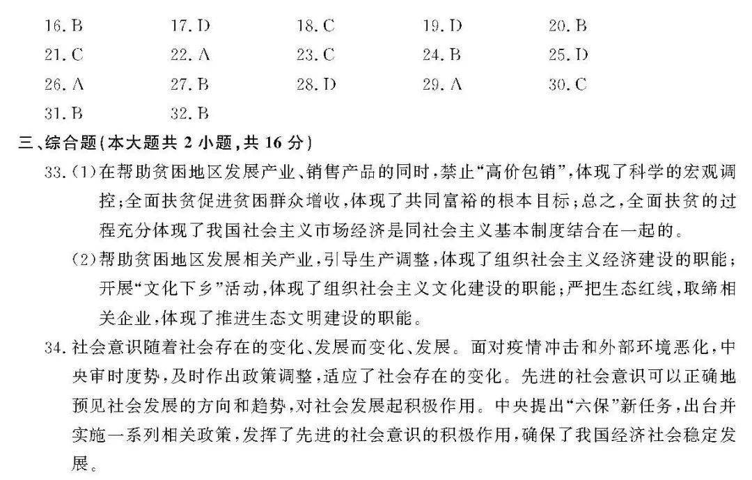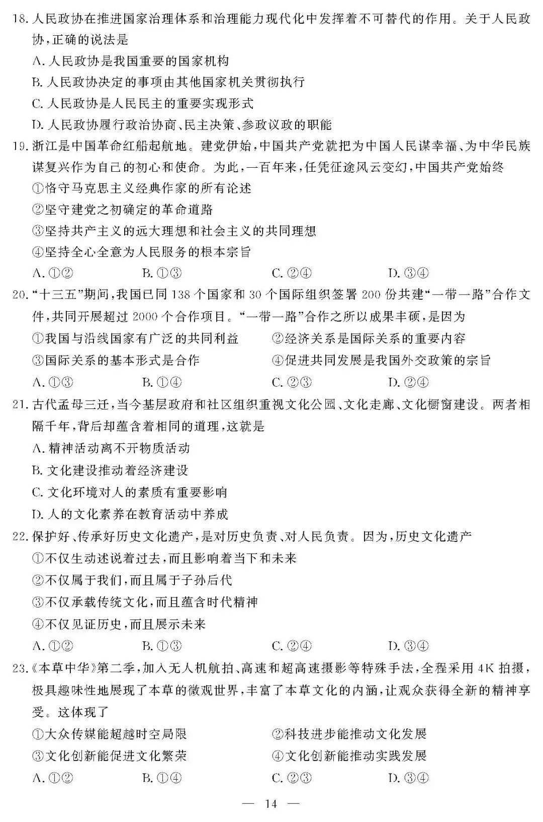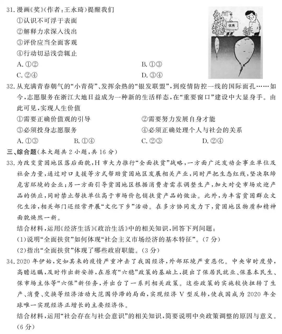 2021年1月浙江普通高中學(xué)考試題和參考答案(思想政治)