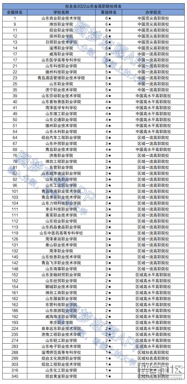 從2022年校友會排名來看,山東省共計有61所專科學(xué)校上榜,其中排名前3的是山東商業(yè)職業(yè)技術(shù)學(xué)院、濰坊職業(yè)學(xué)院、煙臺職業(yè)學(xué)院。