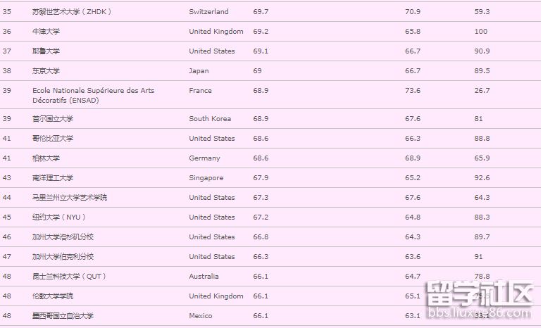一、QS世界大學藝術與設計專業(yè)排名