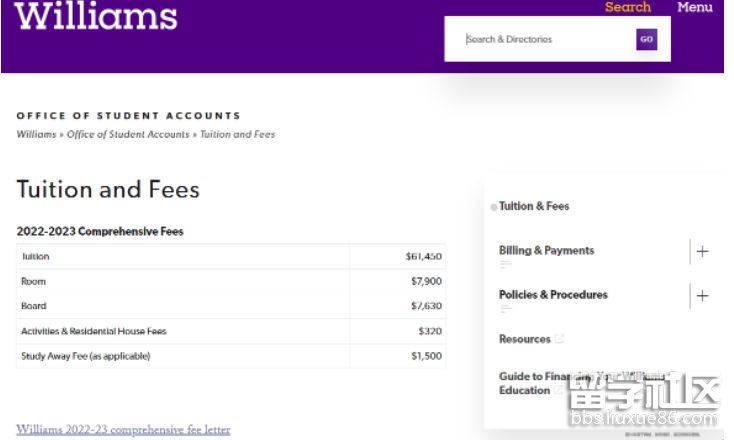一、威廉姆斯學(xué)院費(fèi)用多少錢?
