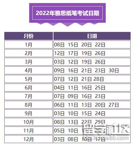 2022年雅思紙筆考試日期