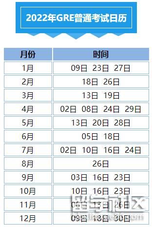 2022年GRE普通考試日歷