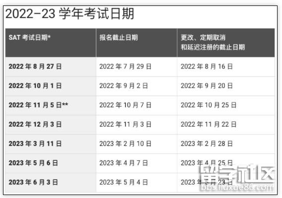 2022年的5.20日正好是520這一天,美國當?shù)貢r間5.19日,SAT舉辦方College Board發(fā)布了2022-2023年SAT考試時間。具體考試時間如下: