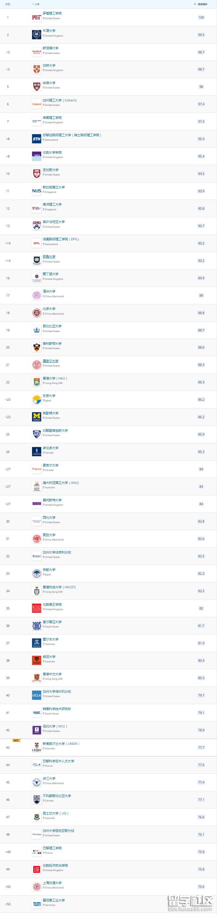 隨著經(jīng)濟(jì)的發(fā)展,出國(guó)留學(xué)不再是少數(shù)家庭消費(fèi)得起了,出國(guó)留學(xué)選擇合適的大學(xué)很重要,選校需要參考的一種一個(gè)因素就是排名,下面是出國(guó)留學(xué)網(wǎng)分享的世界名校100強(qiáng)排名。