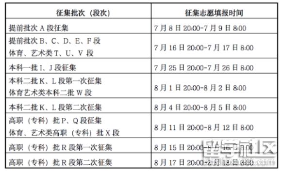 三、征集志愿時(shí)間安排