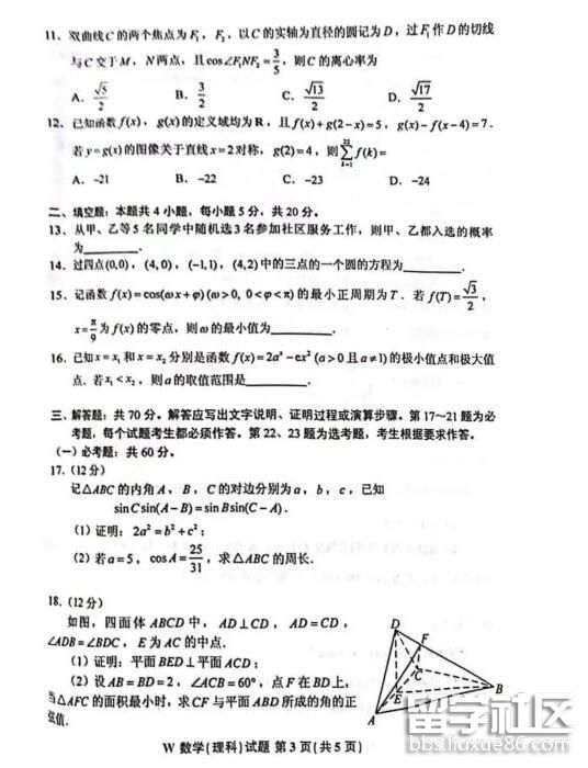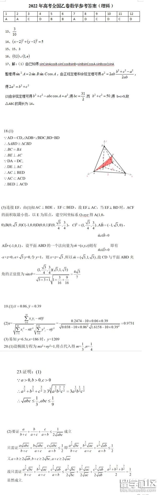 2022內(nèi)蒙古高考理科數(shù)學(xué)真題及答案