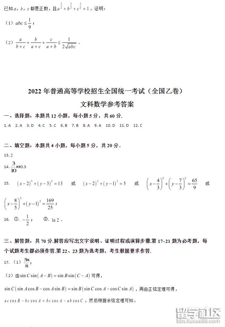 江西省的高考文科數(shù)學(xué)試卷已經(jīng)出來(lái)了,和小編一樣好奇的就一起來(lái)看看吧!下面就由出國(guó)留學(xué)網(wǎng)帶大家了解一下“2022年江西高考文科數(shù)學(xué)試卷及答案”此文本僅供參考,歡迎閱讀。