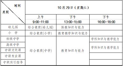 (一)中小學(xué)教師資格考試各學(xué)段考試科目的具體時(shí)間,如表1所示。