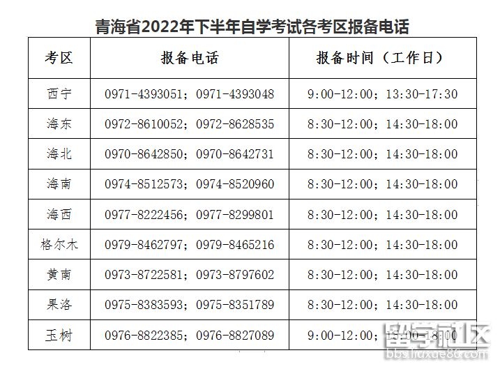 附件:青海省2022年下半年自學(xué)考試各考區(qū)報(bào)備電話