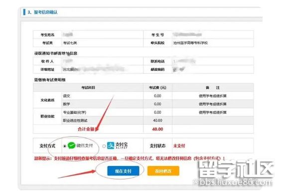 10、確認報考信息,選擇支付方式,本文以微信支付為例。