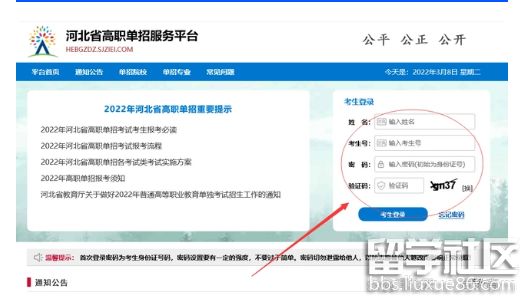 1、打開“河北省高職單招服務平臺” (網(wǎng)址:http://hebgzdz.sjziei.com)