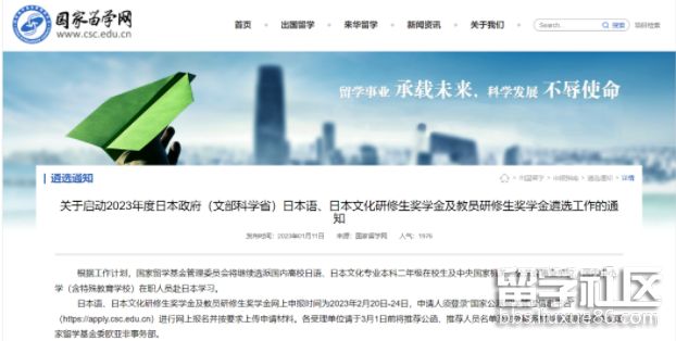 1月11日,國家留學基金管理委員會發(fā)布了《關于啟動2023年度日本政府(文部科學省)日本語、日本文化研修生獎學金及教員研修生獎學金遴選工作的通知》。