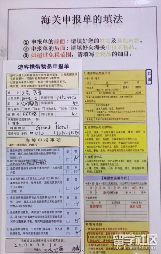 以下是韓國(guó)提供的填寫(xiě)示例:根據(jù)自己實(shí)際情況填寫(xiě)即可。