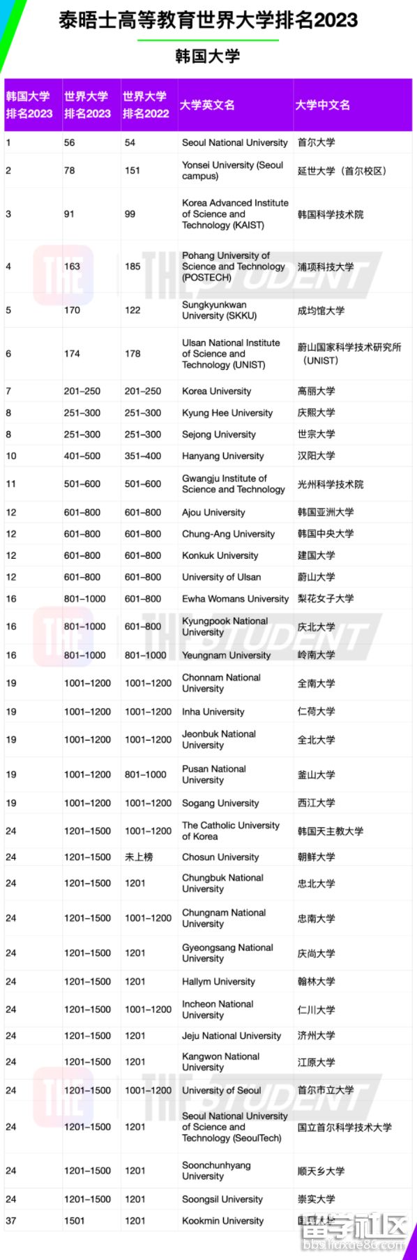 2023年度泰晤士高等教育世界大學(xué)排名中,都有哪些韓國頂尖大學(xué)上榜?