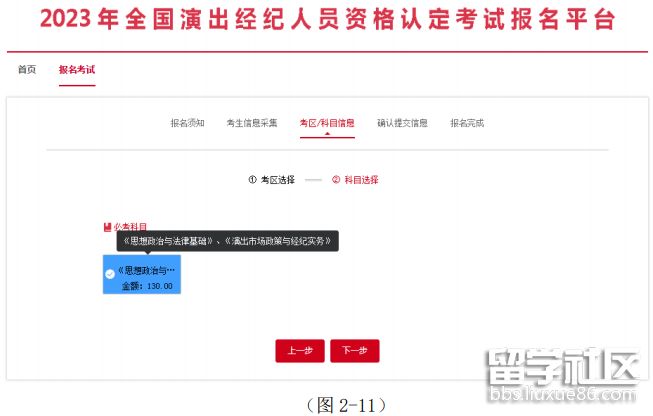 9.在選擇完報考區(qū)域后,點(diǎn)擊“下一步”按鈕,進(jìn)入科目選擇確認(rèn)界面,如 下圖(2-11)