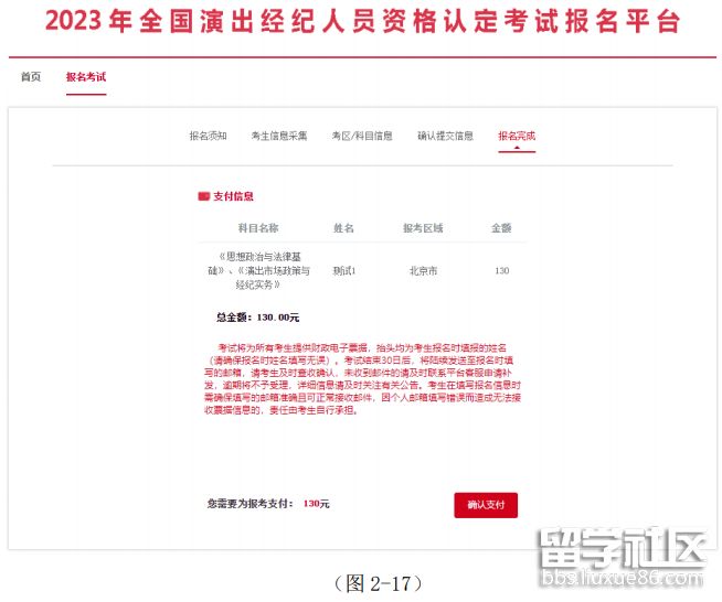 點(diǎn)擊“立即支付”后系統(tǒng)自動跳轉(zhuǎn)到確認(rèn)支付頁面,如下圖(2-17)所示: