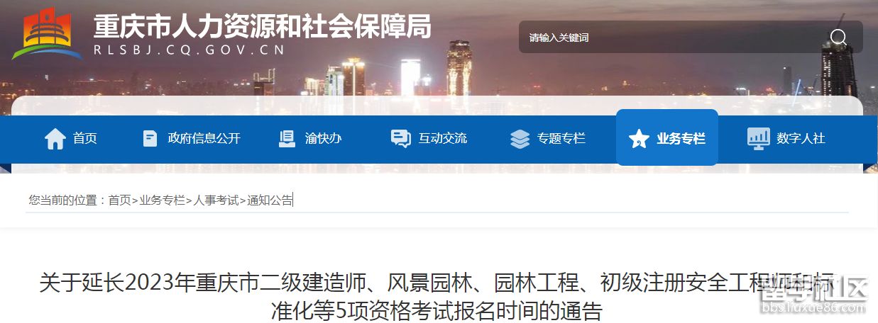 因重慶市專業(yè)技術(shù)資格考試報名平臺維護(hù)升級,為保證考生順利完成報名,經(jīng)研究決定,現(xiàn)將目前在該系統(tǒng)報名的二級建造師、風(fēng)景園林、園林工程、初級注冊安全工程師和標(biāo)準(zhǔn)化等5項資格考試報名時間延長至3月13日17:00,網(wǎng)上繳費時間延長至3月14日17:00,其他安排不變。