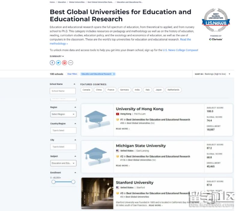 全球最佳大學(xué)教育研究學(xué)科排名第一