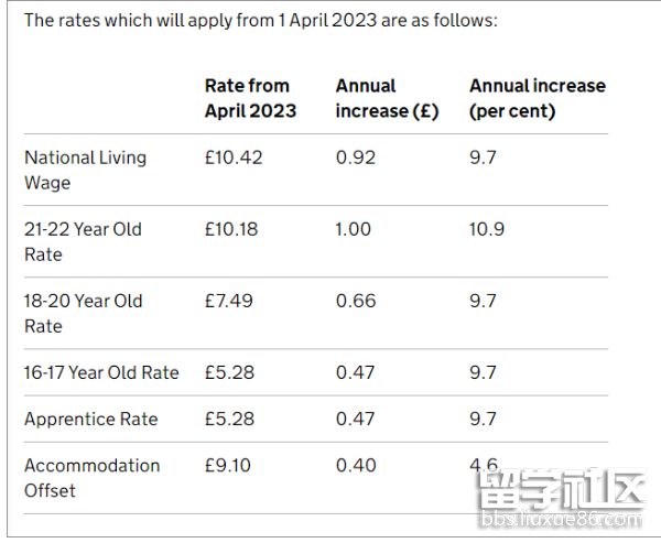 英國政府此前宣布了今年提高全國生活工資和全國最低工資的計劃,于2023年4月1日開始施行。根據(jù)年齡和工作狀況,時薪上漲情況如下:
