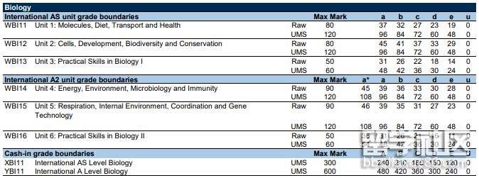以下是A-Level熱門科目的分?jǐn)?shù)線