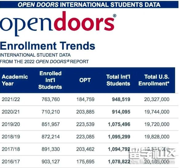 2021-2022學(xué)年,在美留學(xué)的國際學(xué)生總?cè)藬?shù)達(dá)到948,519人,相比上一年度(914,095人)上漲了3.8%。這也是自全球疫情爆發(fā)后,國際學(xué)生人數(shù)連續(xù)兩年下跌之后首次回溫的一年。