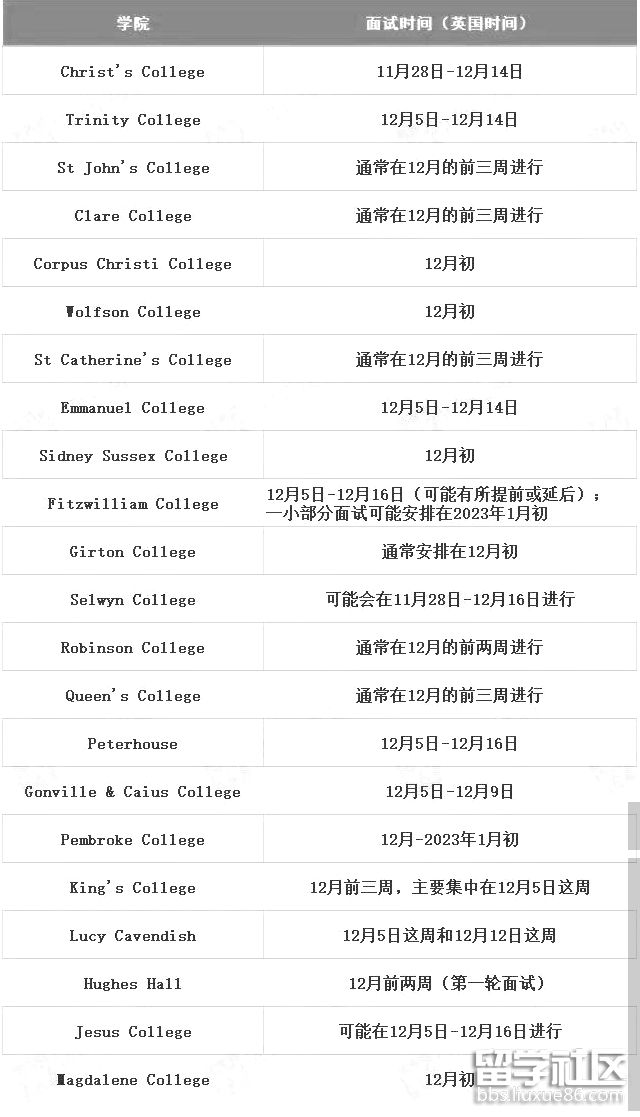 23年申請季牛津大學(xué)各專業(yè)具體面試時間如下: