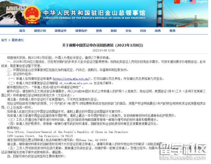 中國駐舊金山領(lǐng)事館1月8日發(fā)布的《關(guān)于調(diào)整中國簽證申辦須知的通知》提到,2020年3月26日之前頒發(fā)、仍在有效期內(nèi)的多年多次赴華簽證仍暫停使用,如有赴華要求,需辦理特定簽證。