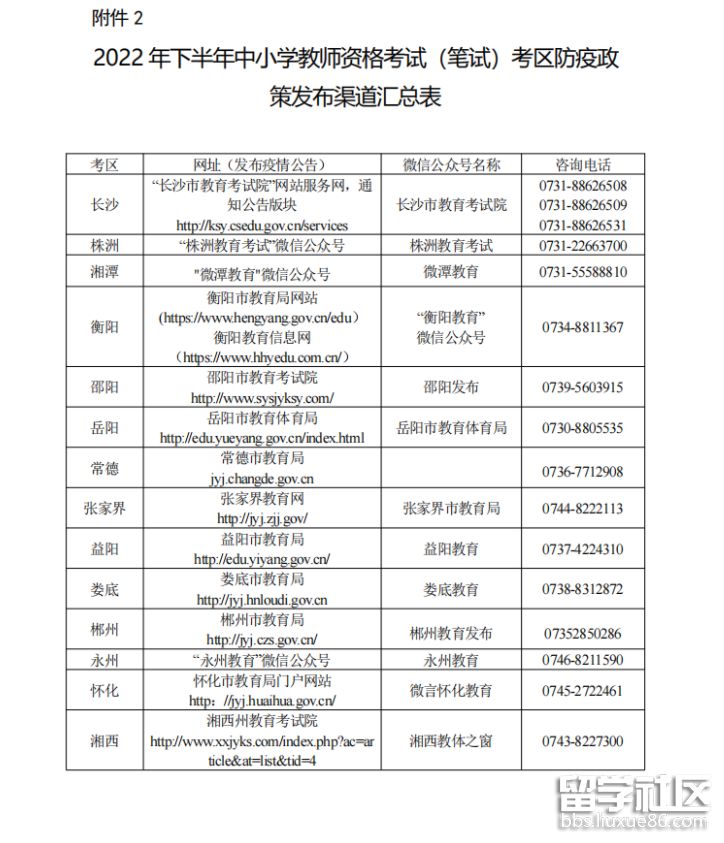 2 . 2022年下半年中小學(xué)教師資格考試(筆試)考區(qū)防疫政策發(fā)布渠道匯總表