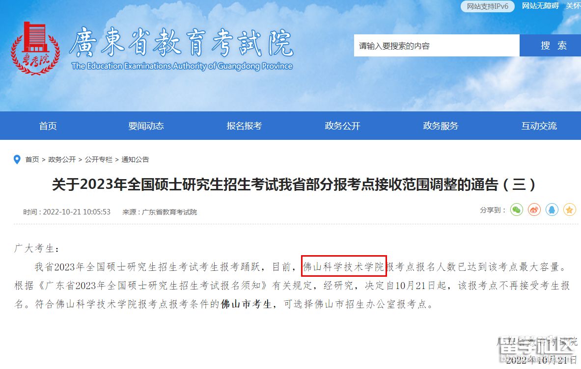 2023年廣東研究生招生考試佛山科學(xué)技術(shù)學(xué)院報(bào)考點(diǎn)接收范圍調(diào)整