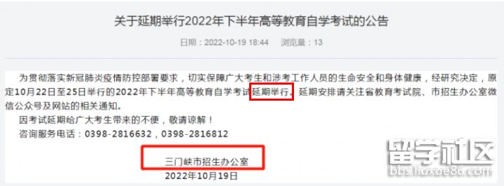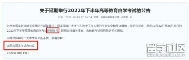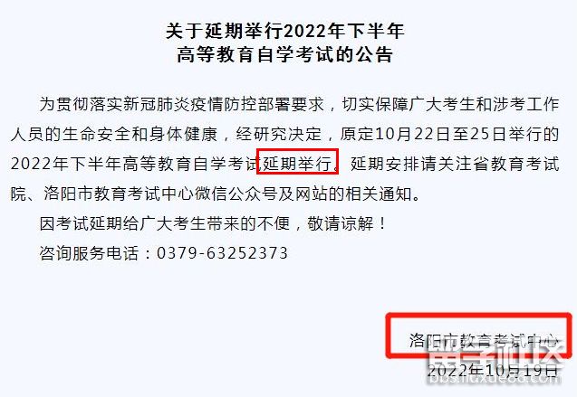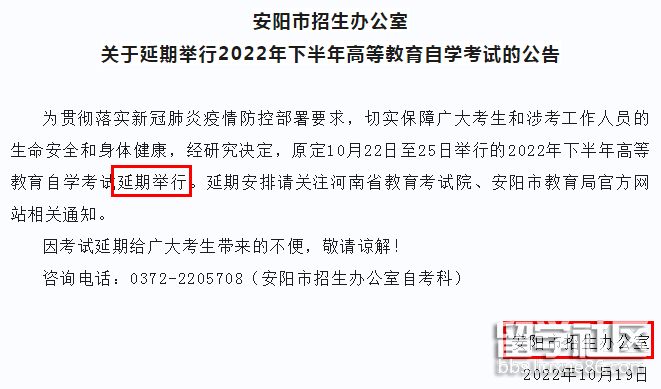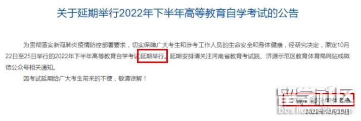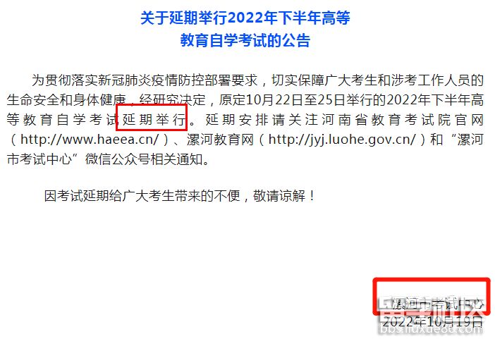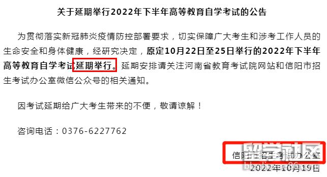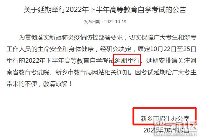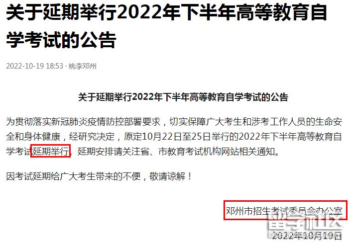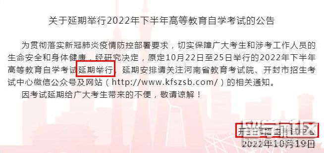 河南省鄭州、開封、洛陽、平頂山、安陽、鶴壁三門峽、南陽、商丘、新鄉(xiāng)、焦作、駐馬店、漯河、濮陽、信陽、許昌、周口、濟源、永城、鞏義、固始、鄧州等地已經(jīng)發(fā)布自學考試延期的通知,具體公告原文如下: