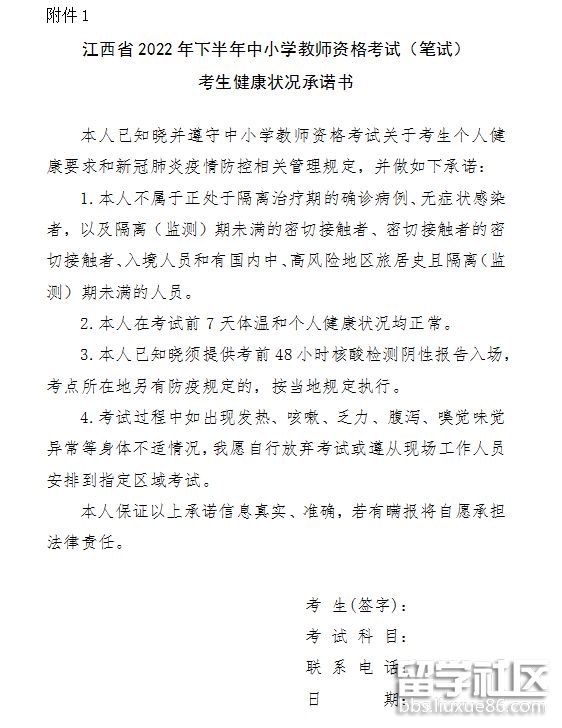 附件:1.江西省2022年下半年中小學(xué)教師資格考試(筆試)考生健康狀況承諾書.docx
