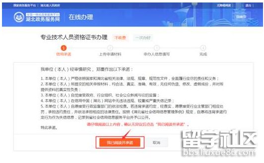 4.請仔細(xì)閱讀專業(yè)技術(shù)人員資格證書辦理承諾書,確認(rèn)無異議后點(diǎn)擊“我已閱讀并承諾”。