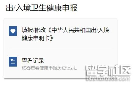 2、選擇“填報/修改《中華人民共和國出/入境健康申明卡》”