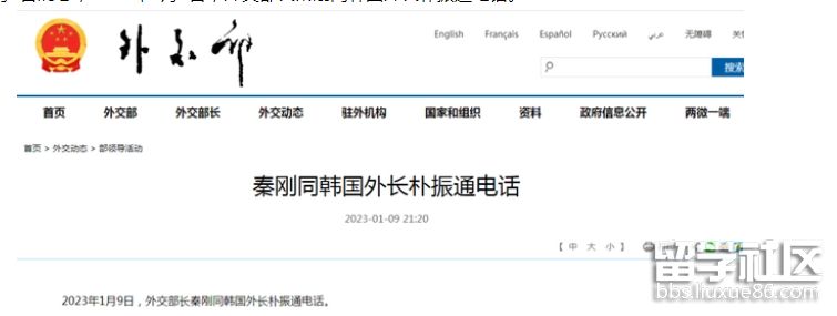 據(jù)外交部網(wǎng)站1月9日消息,2023年1月9日,外交部長秦剛同韓國外長樸振通電話。