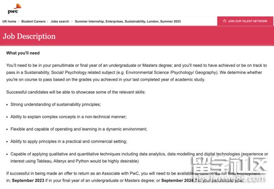 來(lái)看看國(guó)際四大會(huì)計(jì)師事務(wù)所之一的普華永道針對(duì)ESG的暑期實(shí)習(xí)生招聘需求: