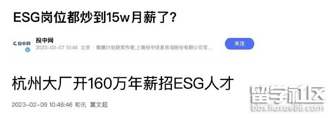 有的公司還直接開(kāi)設(shè)了ESG相關(guān)崗位——ESG獵頭曾經(jīng)直接表示:“企業(yè)ESG部門(mén)經(jīng)理月薪10-15萬(wàn),應(yīng)屆生起薪2-4萬(wàn),已經(jīng)算個(gè)正常薪資水平?!?BR> 另外,據(jù)多家媒體近日?qǐng)?bào)道,ESG崗位招聘火熱,部分月薪炒至15萬(wàn),有杭州大廠160萬(wàn)年薪招聘ESG人才。